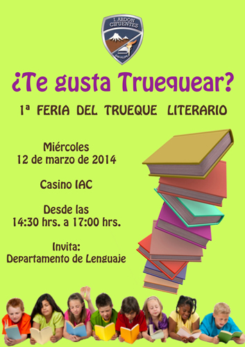 Junto con saludar, les informamos que el departamento de lenguaje ha organizado la «1ª Feria del Trueque Literario«. El objetivo es intercambiar libros con alumnos de otros cursos y apoyarles en la adquisición de textos.